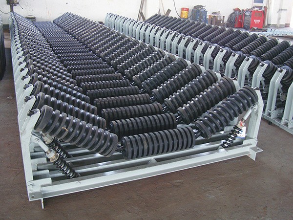 (4)緩沖托輥有彈簧板型托輥、緩沖圈型托輥、強(qiáng)力緩沖型托輥、可調(diào)彈力型托輥、吊掛型托輥等;